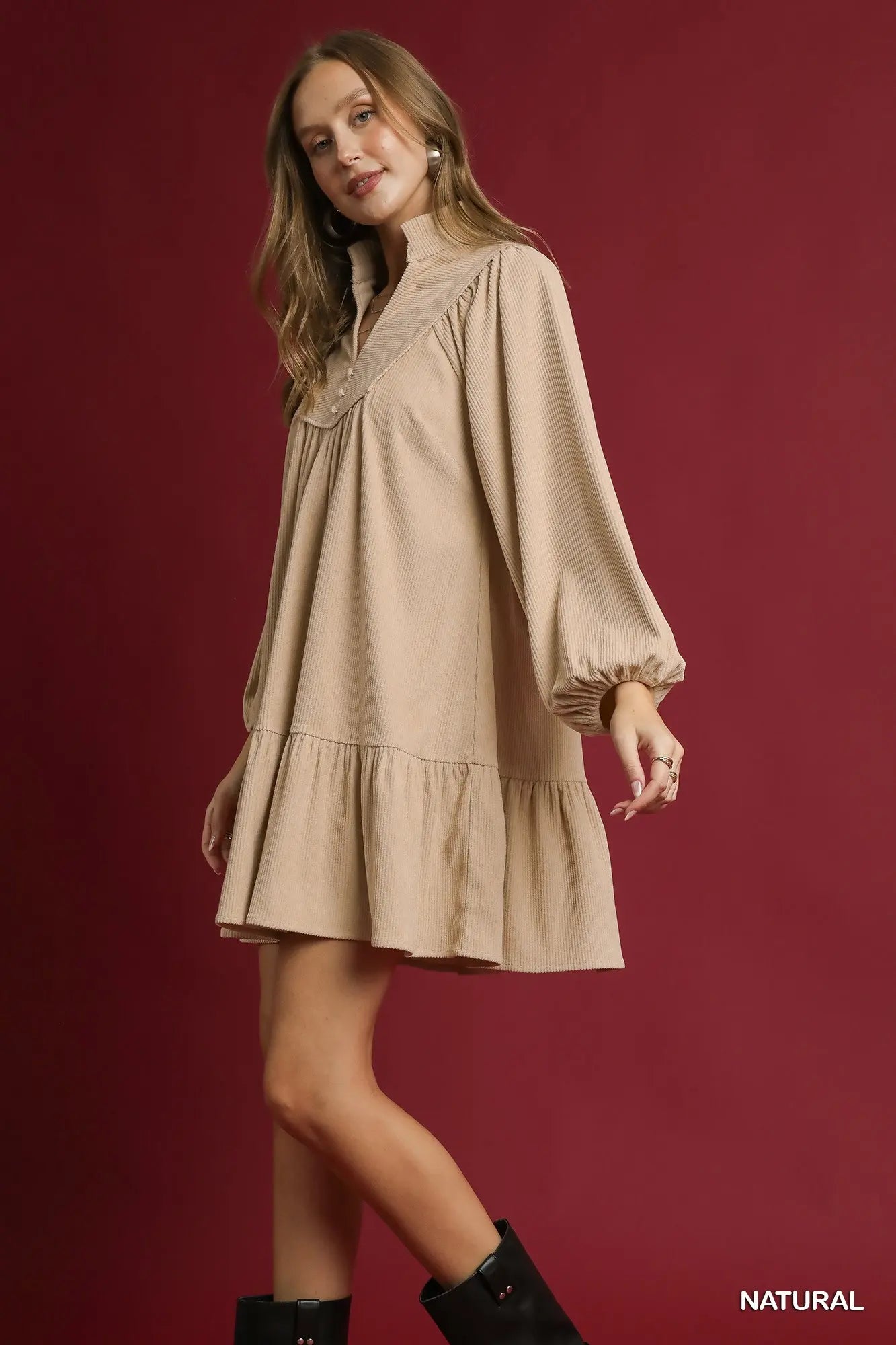 Corduroy Tiered Babydoll Dress