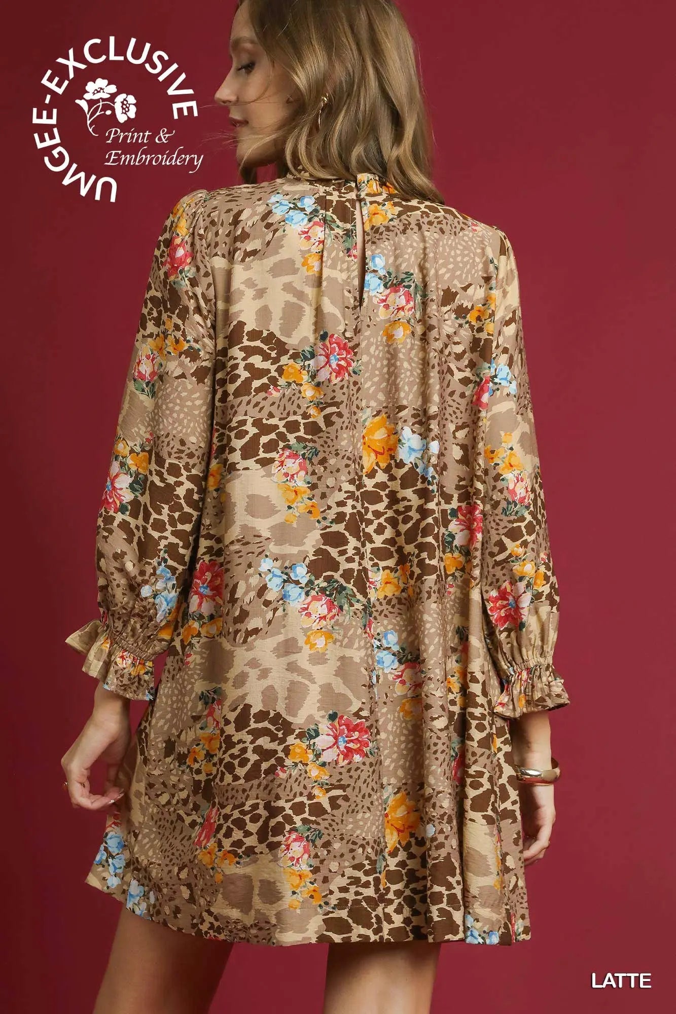 Floral Print High Neck Mini Dress