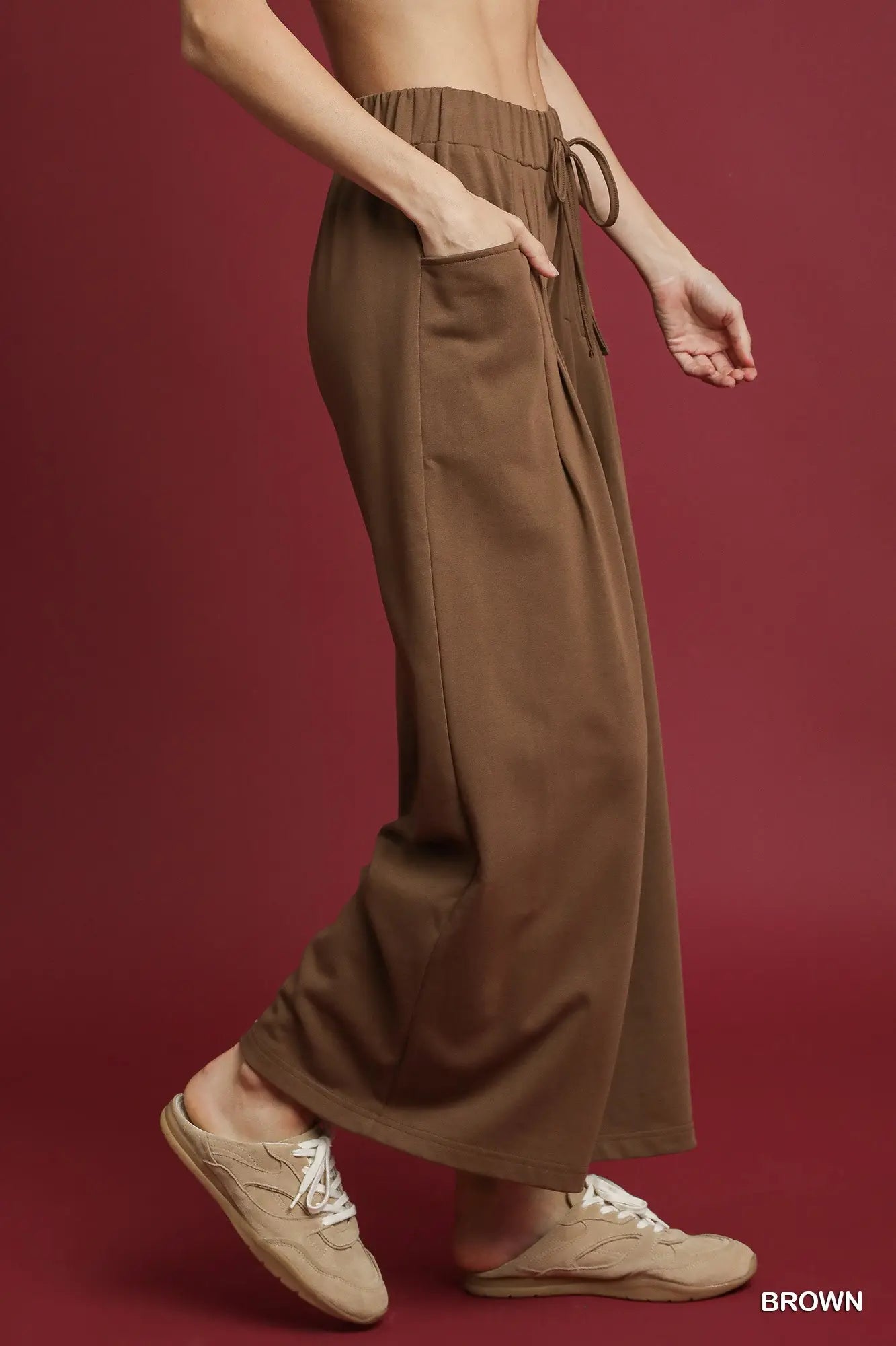 French Terry Wide-Leg Drawstring Pants