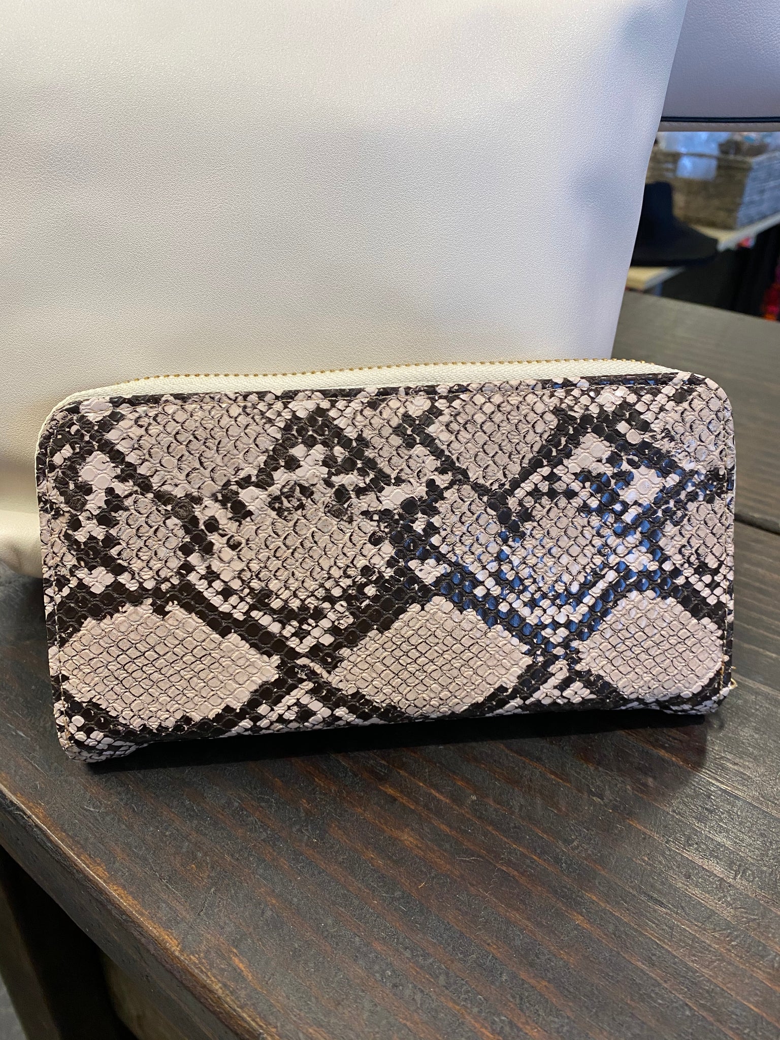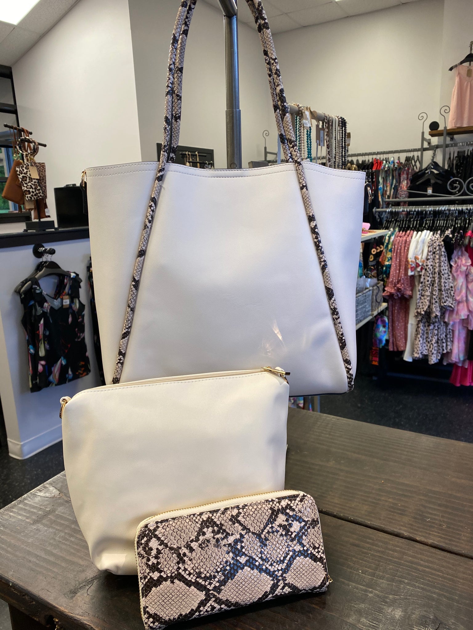 White Handbag with Snake Trim